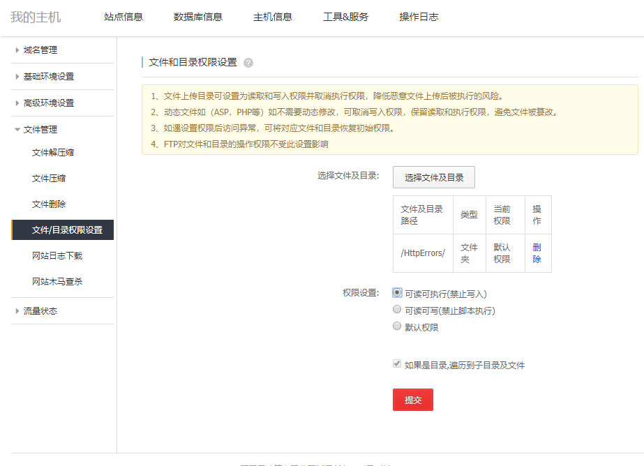 阿里云虛擬主機(文件和目錄)權限設置