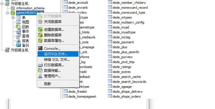 4. 雙擊第一個數(shù)據(jù)庫(顯示為綠色即為打開)-右擊鼠標(biāo)-數(shù)據(jù)傳輸-根據(jù)提示操作,將第一個數(shù)據(jù)庫的內(nèi)容全部傳輸?shù)降诙䝼數(shù)據(jù)庫