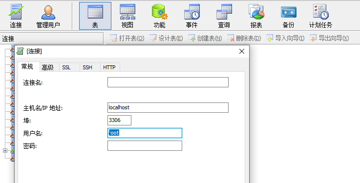 2. 打開管理軟件后,點連接-根據(jù)提示填寫數(shù)據(jù)庫地址/數(shù)據(jù)庫名/數(shù)據(jù)庫密碼-連接