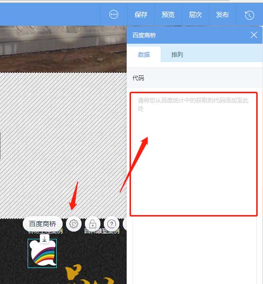 方法同上,在頭尾文件處添加方法:組件-互動社交-百度商橋控件-在頁尾處點(diǎn)擊一下,然后再設(shè)置控制-將在百度商橋代碼填入并保存即可。