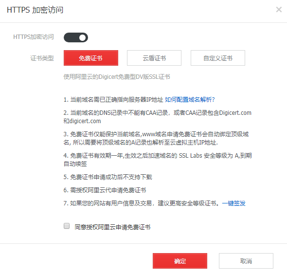 首先要確認(rèn)虛擬主機(jī)是獨(dú)享IP的,如果是共享主機(jī),請掃右側(cè)二維碼-聯(lián)系客服,將網(wǎng)站升級到獨(dú)享版的虛擬主機(jī),再登錄cp.aliyun.com主機(jī)控制面板-域名管理-添加域名(解析和備案成功的)-再點(diǎn)強(qiáng)制HTTPS加密訪問-開啟-根據(jù)提示點(diǎn)確定(如果你的證書在阿里申請的,只管等待安裝結(jié)果)