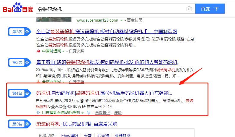 山東建能碼垛機(jī)官網(wǎng)委托環(huán)宇網(wǎng)絡(luò)優(yōu)化網(wǎng)站,關(guān)鍵詞:自動(dòng)碼垛機(jī),高位碼垛機(jī),袋裝碼垛機(jī)等詞,經(jīng)過SEO技術(shù)專員努力,碼垛機(jī)相關(guān)的關(guān)鍵詞已經(jīng)80%達(dá)標(biāo)。...